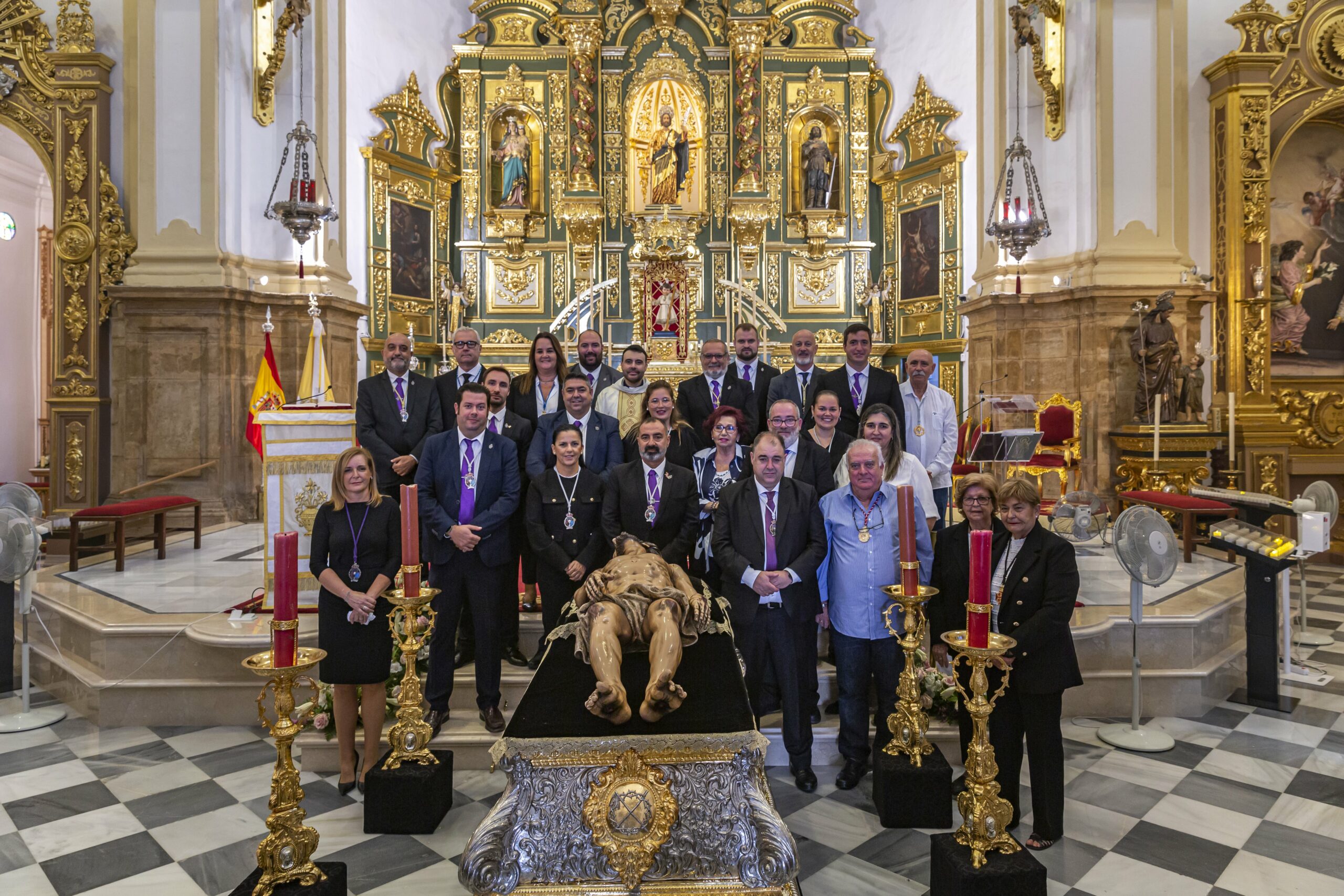 El acto litúrgico contó con la presencia de la Junta de Gobierno, miembros de otras hermandades y representación de la corporación municipal, que se reunió en torno al altar mayor para rendir homenaje y oración ante la sagrada imagen del Santísimo Cristo Yacente en su Santo Sepulcro.