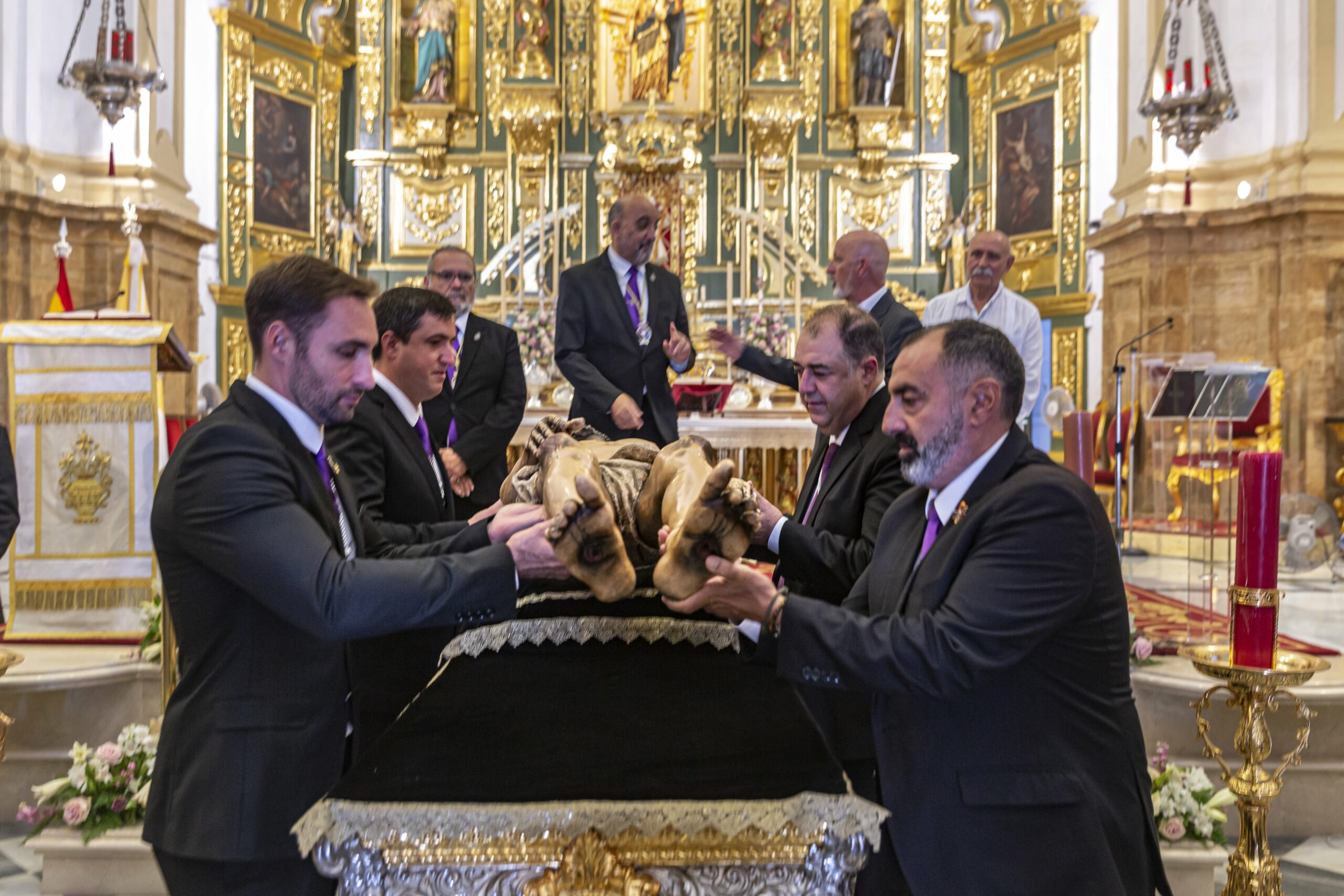 Durante la celebración, el Santo Cristo Yacente se encontraba en su catafalco a los pies del Altar Mayor.